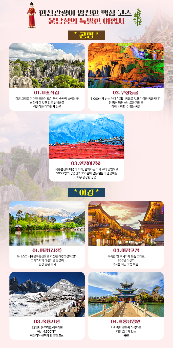 [찐한세일] 곤명/여강 5일 #옥룡설산 #호도협 #고속열차 #월드체인호텔